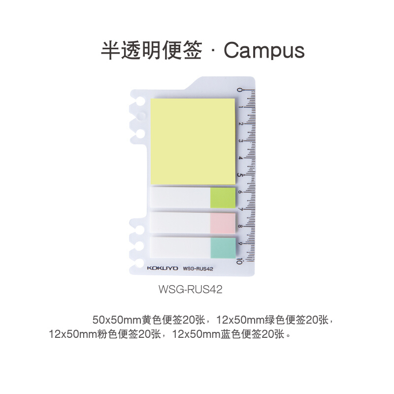 首页 > 纸及纸质品 > 纸及纸板(不包含复印纸) > 国誉(KOKUYO)Campus半透明学生活页便签便利贴76*117mm自带10cm刻度尺 半透明 4个装 WSG-RUS42(SKU:yzwhyp919927