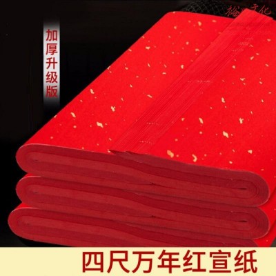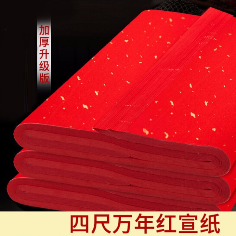 御宝阁 万年红对联纸春联宣纸四尺加厚大红纸剪纸专用纸手写空白宣纸 洒金-四尺整张【68*138cm】 50张(SKU:yzwhyp919946