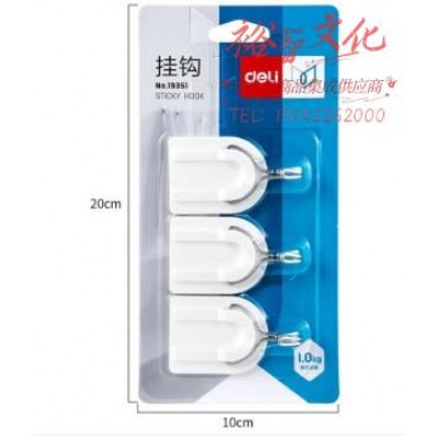 得力(deli)19351 挂钩墙壁壁挂粘钩 粘钩免钉挂钩承重1kg(白色)(3只/卡) (SKU:yzwhyp919947