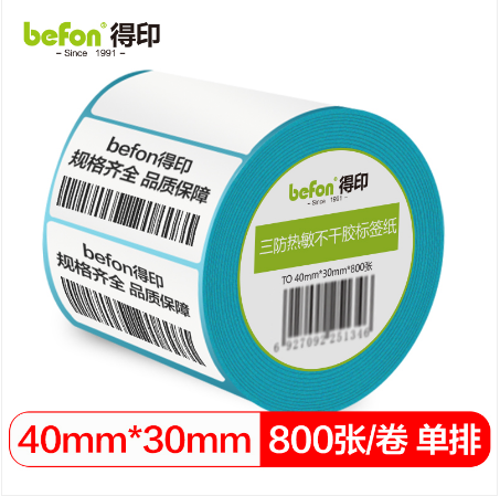 befon得印 三防热敏标签打印纸40mm*30mm不干胶面单电子秤条码纸800张 (SKU:yzwhyp920018