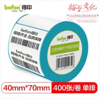 首页 > 纸及纸质品 > 纸及纸板(不包含复印纸) > befon得印 三防热敏纸不干胶标签纸 40mm*70mm*400枚 单排 热敏标签纸 热敏不干胶打印纸 条码纸/电子秤纸 (SKU:yzwhyp920019
