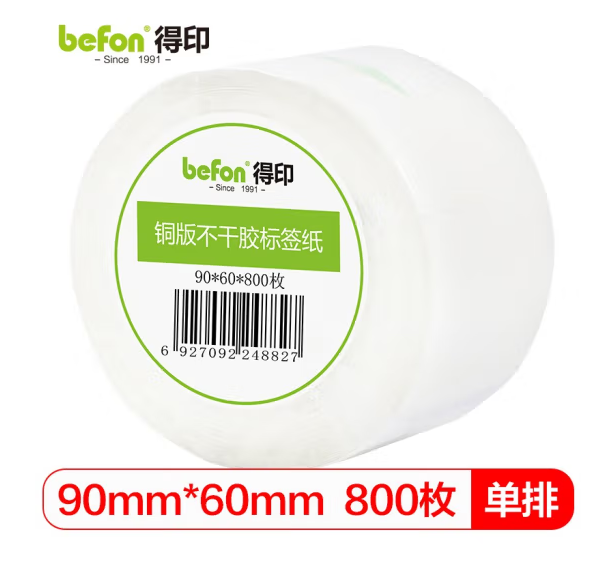 得印(befon)不干胶标签纸 铜版纸90mm*60mm 800枚 单排 条码纸 打印贴纸 (SKU:yzwhyp920024