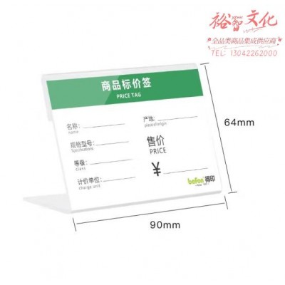 首页 > 办公用品 > 文具 > 得印(befon) 标牌 6*9cm 10个装4668 亚克力价格牌价签牌 超市商场商品标价牌签 L型展示架标签牌 促销标签纸 (SKU:yzwhyp920058