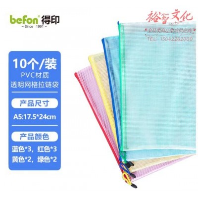 得印(befon) 10只A5防水网格拉链袋 彩色软质拉边袋 办公文件袋资料袋收纳袋 4色混装 办公用品6664 (SKU:yzwhyp920060