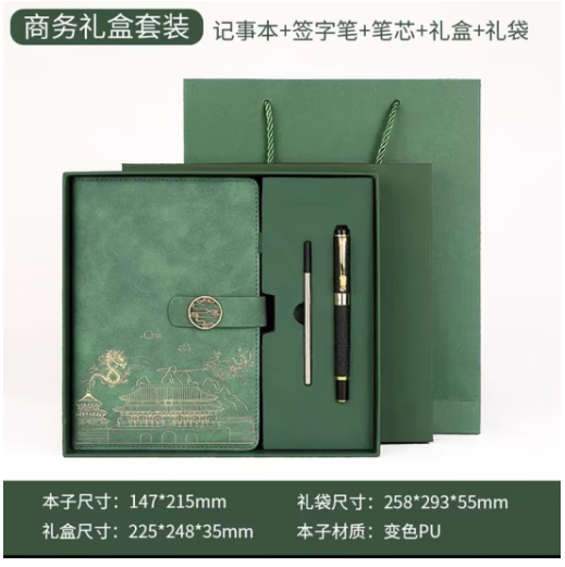 首页 > 办公用品 > 文具 > 国为(COUVEZI) 可定制国潮故宫高颜值笔记本本子精美礼品套装记事本a5文具礼盒刻字商务伴手礼 龙凤呈祥套装(绿色) (SKU:yzwhyp920085