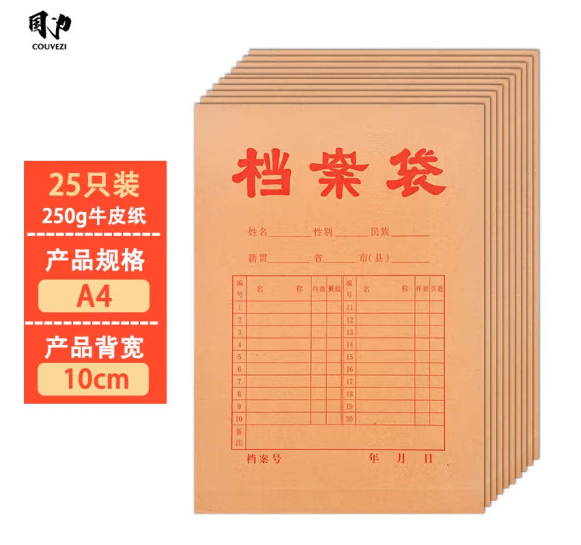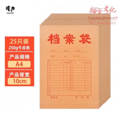 国为(COUVEZI) A4牛皮纸档案袋 侧宽文件袋/资料袋/标书合同 侧宽10cm 250G 25只 (SKU:yzwhyp920098
