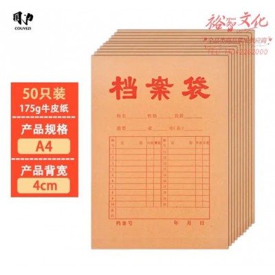 国为(COUVEZI) A4牛皮纸档案袋 侧宽文件袋/资料袋/标书合同 【抢手款】侧面4cm 175G 50只 (SKU:yzwhyp920099