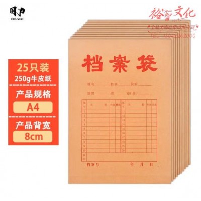 国为(COUVEZI) A4牛皮纸档案袋 侧宽文件袋/资料袋/标书合同 侧宽8cm 250G 25只 (SKU:yzwhyp920100