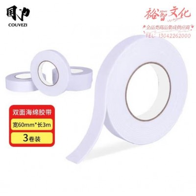 国为(COUVEZI) 双面海绵胶带泡沫泡棉胶布/泡沫双面胶办公文具 60mm*3m 3卷装 (SKU:yzwhyp920106