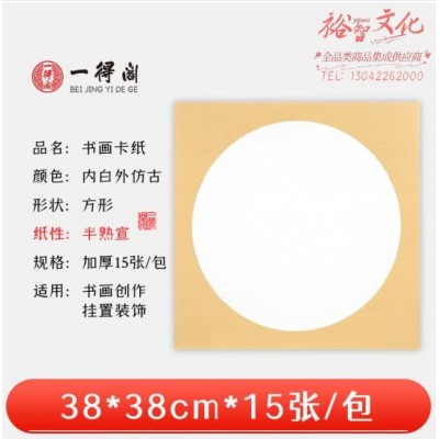 一得阁宣纸卡纸空白镜片书画卡纸 国画扇面工笔画书法画装框用文房四宝卡纸内白外仿古38cm*38cm半熟宣/15张 (SKU:yzwhyp920148
