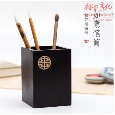 御宝阁 如意笔筒紫光檀实木镶铜毛笔收纳盒笔桶文房摆件创意个性复古文具收纳中国风简约时尚多功能 如意笔筒 (SKU:yzwhyp920195