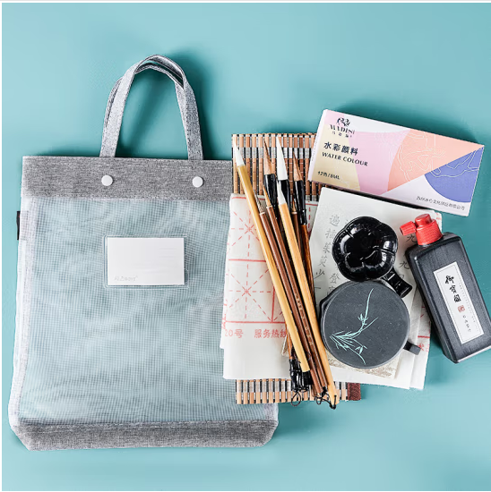 首页 > 办公用品 > 文具 > 御宝阁 文房收纳袋盒笔墨纸砚书法包宣纸水写布包初学练字套装专用小学生练字工具盒用品便携手提透明国画 初学13件套装-灰色手提袋款(粉色、蓝色)请联系客服 (SKU:yzwhyp920196