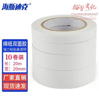 海斯迪克 双面胶 棉纸易撕热熔两面胶 宽20mm*20米(10卷/件) HK-5081(SKU:yzwhyp920207