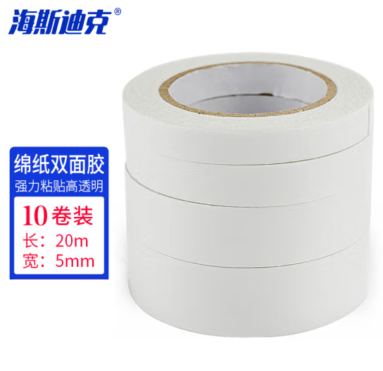 海斯迪克 HK-5081 强力双面胶 棉纸易撕胶带 宽5mm*20米 10卷 很窄 2件起订(SKU:yzwhyp920210