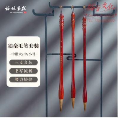 首页 > 办公用品 > 文具 > 梅林笔庄狼毫毛笔套装文房四宝初学者成人字帖临摹学生练字国画书法专用大中小楷三支装 (SKU:yzwhyp920249