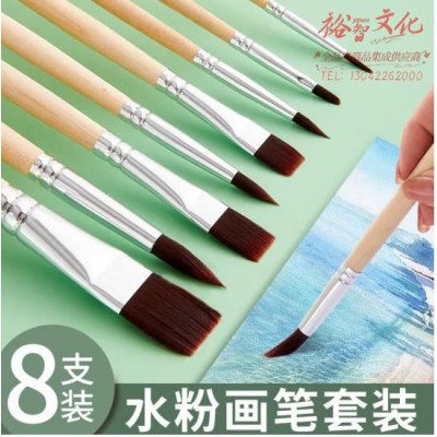 六品堂水粉画笔丙烯水彩笔套装美术生专用绘画尼龙毛笔刷原木色杆水粉笔初学者学生工具 (SKU:yzwhyp920271