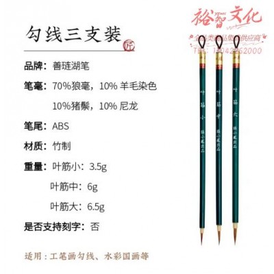 善琏湖笔 狼毫勾线笔 白描工笔瘦金体国画工具水粉画笔文房四宝 狼毫勾线笔三支装 (SKU:yzwhyp920282