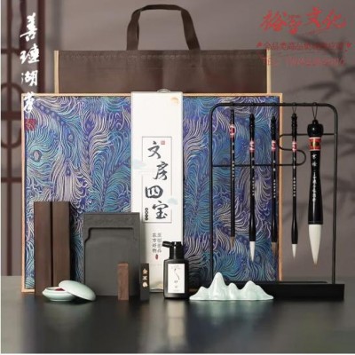 善琏湖笔 毛笔砚台墨条文房四宝笔墨纸砚专业级初学者书法国画镇纸印章送礼自用高档文房礼盒高档套装 青云直上文房礼盒 (SKU:yzwhyp920299