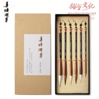 善琏湖笔 毛笔套装 文房四宝狼毫兼毫黑兼灰尾小楷欧体提笔 匠品礼盒(6支装) (SKU:yzwhyp920301