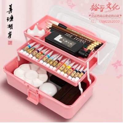 首页 > 办公用品 > 文具 > 善琏湖笔 国画颜料初学者套装工具 中国画毛笔宣纸镇尺印章笔画水墨画山水画花鸟画小学生入门文房四宝 国画套装粉色18色12ml(升级款) (SKU:yzwhyp920304