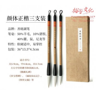 善琏湖笔 兼毫毛笔套装初学者大中小楷毛笔高档斗笔行草隶楷书欧颜体专用软笔书法国画文房四宝 兼毫三支装带礼盒 (SKU:yzwhyp920309
