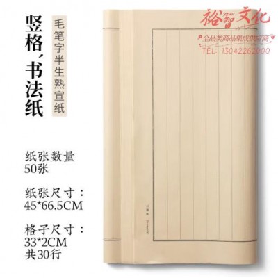 首页 > 办公用品 > 文具 > 張小鳳 宣纸小楷方格日课纸6-7分熟青竹浆仿古白色格子半生半熟宣纸竖排状元笺行书书法练习100张 竖格 2cm(45*66cm*50张) (SKU:yzwhyp920324