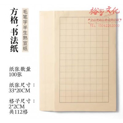 張小鳳 宣纸小楷方格日课纸6-7分熟青竹浆仿古白色格子半生半熟宣纸竖排状元笺行书书法练习100张 中方格 2.0cm(100张) (SKU:yzwhyp920325