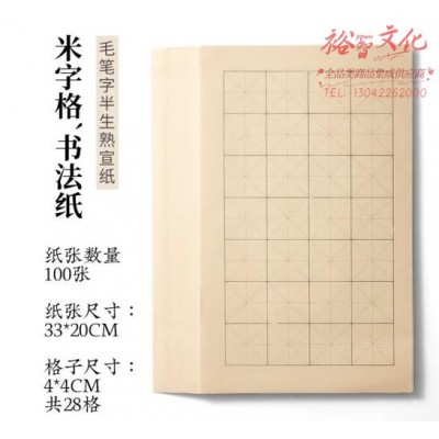 張小鳳 宣纸小楷方格日课纸6-7分熟青竹浆仿古白色格子半生半熟宣纸竖排状元笺行书书法练习100张 米字格 4.0cm(100张) (SKU:yzwhyp920326