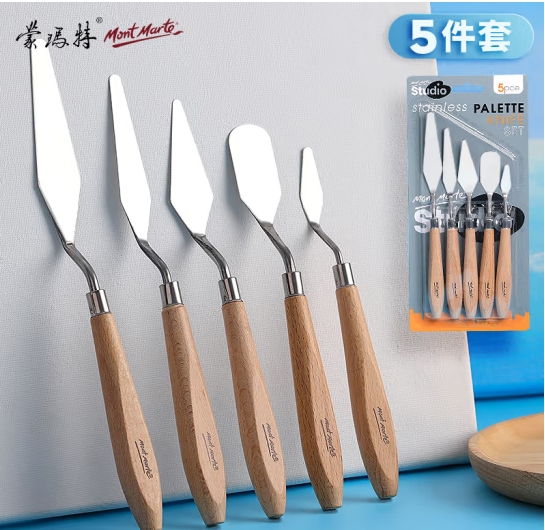 蒙玛特(Mont Marte)油画刮刀5支装 美术水粉丙烯绘画调色刀画画颜料肌理刀 圆头尖头铲刀工具套装MAPK0002 (SKU:yzwhyp920344