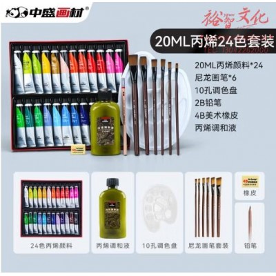中盛画材(transon)丙烯颜料套装 24色美术手绘颜料儿童染料画画美术套装 初学者入门绘画色彩颜料 (SKU:yzwhyp920350