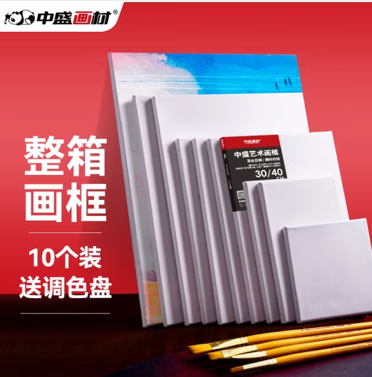 首页 > 办公用品 > 文具 > 中盛画材 【10个装】40*40CM油画框亚麻油画布板丙烯颜料油画工具已刷胶涂层布 (SKU:yzwhyp920394