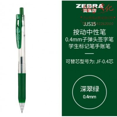 斑马牌(ZEBRA)0.4mm子弹头按动中性笔 彩色学生笔记签字笔学习标注填色手账笔 JJS15 深翠绿 单支装 (SKU:yzwhyp920397