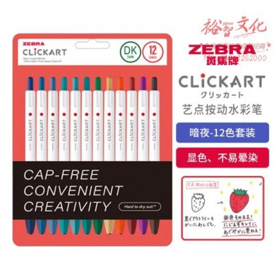 斑马牌(ZEBRA)艺点按动水彩笔 学生儿童涂鸦绘画填色细杆彩色笔手账笔 生日礼物 WYSS22 暗夜色系12色装 (SKU:yzwhyp920398