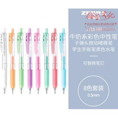 斑马牌(ZEBRA)JJ15-MK 牛奶系彩色中性笔 0.5mm子弹头按动啫喱笔标记笔 学生手账笔柔色水笔 8色套 (SKU:yzwhyp920404