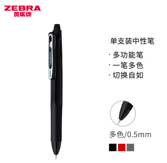 斑马牌(ZEBRA)双色中性笔 便携多功能笔 0.5mm子弹头按动签字笔 0.5mm自动铅笔 SJ2 暗黑杆 (SKU:yzwhyp920414