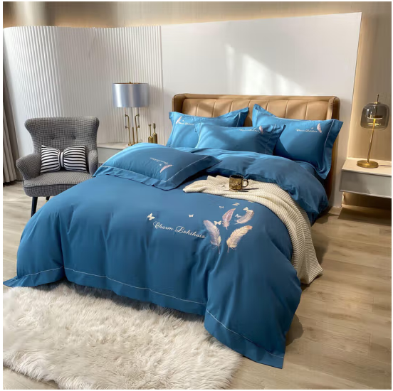 洁丽雅(Grace)四件套双人刺绣纯色绣花被套床品套件羽蝶-月光蓝被套2x2.3米被套(SKU:yzwhyp920440