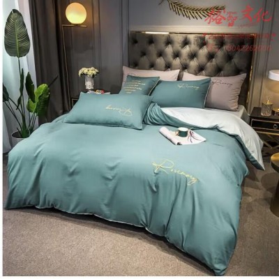 洁丽雅四件套 轻奢刺绣款枕套床单 双人套件 浅石蓝 梵星蓝 1.5m/1.8床(SKU:yzwhyp920441