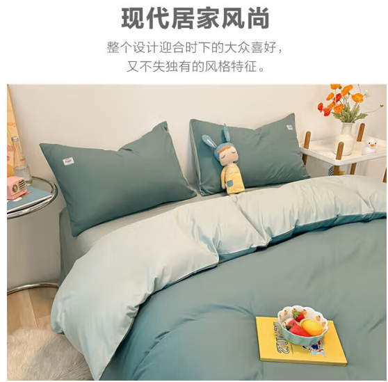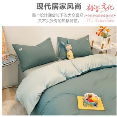 洁丽雅四件套 被套床单枕套套件1.5/1.8米床(被套:2×2.3M)浅石蓝(SKU:yzwhyp920446