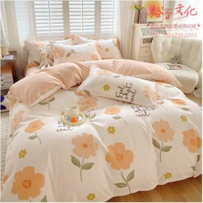 洁丽雅(Grace)磨毛四件套加厚套件床单款小清新ins风床上用品双人被套枕套 初夏-桔四件套被套2*2.3米(SKU:yzwhyp920452