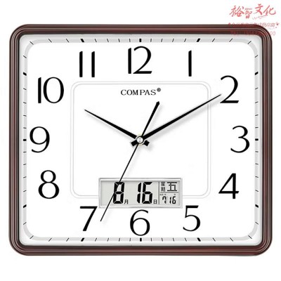 康巴丝(Compas)挂钟客厅钟表方形日历简约时钟居家办公挂表电子石英钟 C3201Y 橡木(SKU:yzwhyp920470
