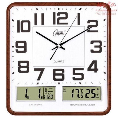首页 > 仪器仪表 > > 康巴丝(Compas)挂钟客厅万年历温湿度时钟简约方形日历石英钟表 C2983 咖木(SKU:yzwhyp920471