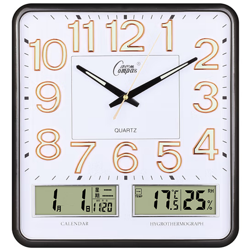 首页 > 仪器仪表 > > 康巴丝(Compas)挂钟客厅万年历温湿度时钟简约日历石英钟表 C2983Y 夜光黑白(SKU:yzwhyp920473