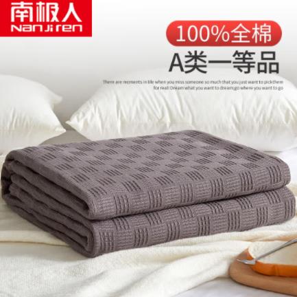 南极人全棉A类纱布 夏季薄款空调毯 午休毯子 褐色-100%新疆棉毛巾被 150cmx200cm【铺盖二用】(SKU:yzwhyp920575
