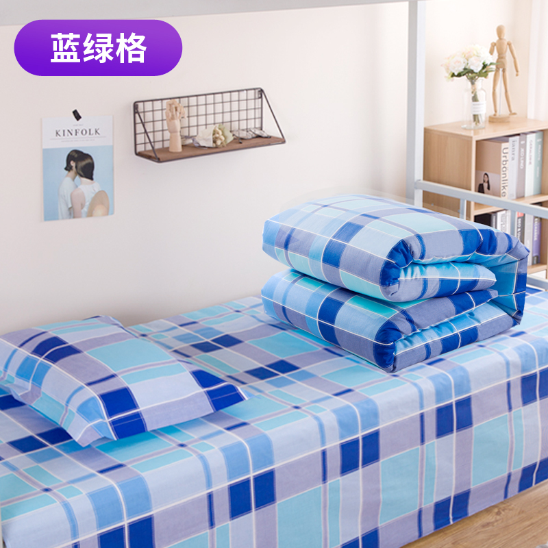 首页 > 装具 > 床罩 > 三五八五 被褥套装 宿舍棉被单人棉花被被芯 蓝绿格 0.9米单人床4斤被五件套(SKU:yzwhyp920584