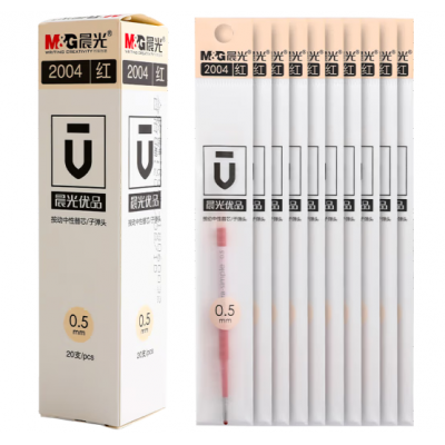 晨光优品陶瓷球球中性笔芯/替芯 20支/盒2004 红色0.5mm - 天津市裕智文化用品销售有限公司