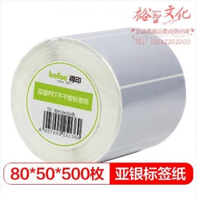 首页 > 纸及纸质品 > 纸及纸板(不包含复印纸) > 得印(befon)哑银pet标签纸 80mm*50mm*500枚单排 亚银不干胶条码打印纸 防水贴纸 三防固定资产设备标签 (SKU:yzwhyp921031