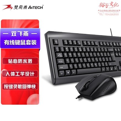 双飞燕(A4TECH) KB-N9100 键鼠套装有线鼠标键盘套装薄膜键盘鼠标套装防泼溅 USB接口 黑色(SKU:yzwhyp921063
