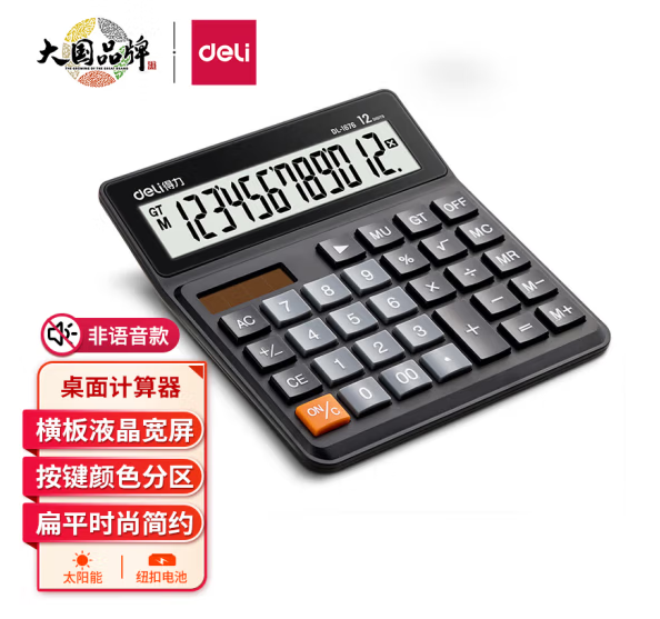 得力(deli)双电源桌面计算器 12位宽屏财务计算器 1676 颜色随机(SKU:yzwhyp921210
