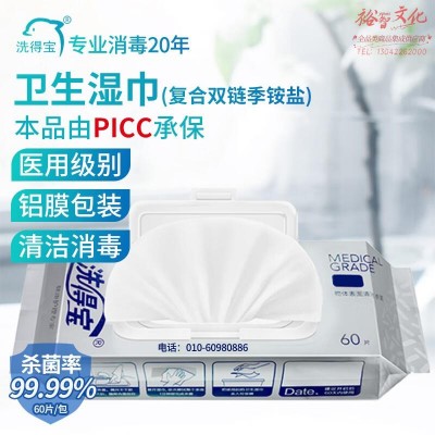 洗得宝 卫生湿巾60片 医院用物体表面马桶消毒湿巾除菌湿巾杀菌消毒湿巾(SKU:yzwhyp921242