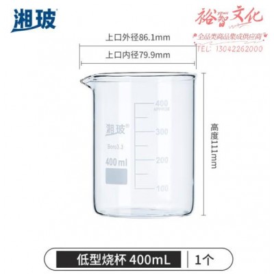 比克曼生物(BKMAM)湘玻 玻璃烧杯低型带刻度透明量杯加厚高硼硅耐高温实验器材 【400mL】1个 (SKU:yzwhyp921249